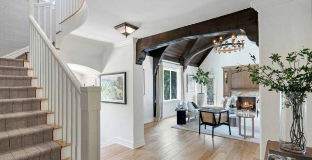 Datant de 1939, la villa fait 470 mètres carrés sans compter l’extérieur. Dotée de magnifiques boiseries dans les pièces de vie, la maison possède trois salons, quatre chambres, cinq salles de bains et plusieurs cheminées.